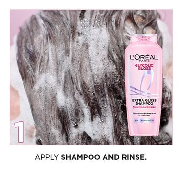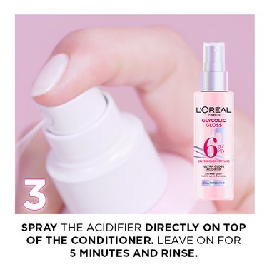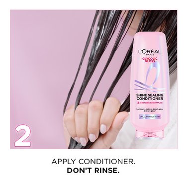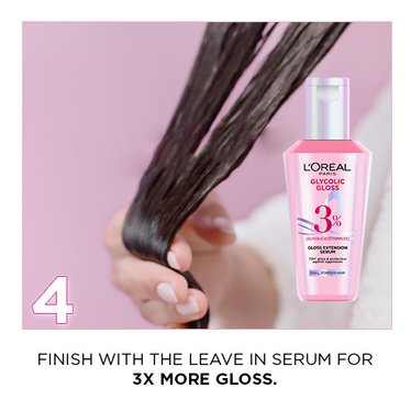 Step 1: Apply a small amount of the L’Oréal Glycolic Gloss Extension Serum to damp or dry hair.